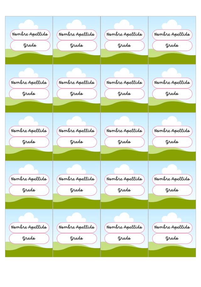 Etiquetas escolares en varios tamaños